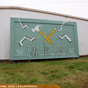 The Art Complex Billboard is located on the east side of Art Building F. Students in art department classes design, develop, and create up to around four different images each semester.Photographs