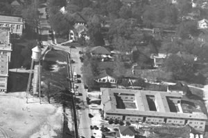 The Lowman Student Center (LSC) is located in the heart of campus and contains dining areas, meeting rooms, a theater, an art gallery, ballroom, a bookstore and many other facilities for students, staff, faculty, alumni and guests. Austin Hall was used as a student social center around 1919. The first separate student union building was erected in 1950; it is known today as the Houston Building. The LSC was home for many years to the university's only indoor pool, installed in the northern end of the building on April 1, 1964. It was a popular destination for many years but continuous equipment breakdowns and lack of exposure and subsequent disuse closed the pool on December 31, 1997. As part of the $11 million renovations in the early 2000s, the former pool area was converted into a larger ballroom. Other changes include new meeting rooms, an information center, expanded dining venues, and two-story atrium. The building's technological upgrades include Internet access and teleconferencing capabilities for conference rooms and the latest virtual reality games for the expanded game room. The LSC Mall is defined as the area between the Avenue I and Alumni Fountain and between the LSC and the edge of Bearkat Plaza. It was announced in 2009 that the LSC was on the demolition schedule as part of the 2008 Campus Master Plan. SHSU President James Gaertner, speaking in July, said the building "has gotten to the point where it's getting outdated and needs to come down. We won't tear it down until three or four years from now. We will build a new student center right there in the same place in the middle of the campus [1]."