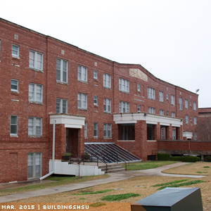 The eastern side of Buchanan Hall wing that extends northward from Belvin along University Drive.