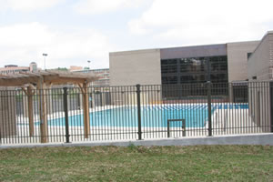 The Health and Kinesiology Center (HKC) and Recreational Sports annex is located at the southeastern edge of campus at the intersection of Bobby K. Marks Drvie and Bowers Boulevard. It houses the Department of Health and Kinesiology and the Office of Recreational Sports and Activities. The 1982 Alcalde notes the Health and Physical Education (HPE) Complex was originally planned for an area west of the coliseum, where the Randel, Spivey, and Vick Houses stood. Containing basketball courts, gymnasiums, an indoor track, and other recreational areas, the building was planned as the modern successor to the two gymnasiums - the Women's, torn down in 1983, and the Men's, which the 1984 Alcalde said would be removed shortly after creation of the HPE. Construction began in 2003 on the Recreational Sports addition, a 26,000 square foot expansion on the western side of the existing building. The new structure, built at a cost of $6.7 Million, houses a larger weight room, indoor climbing wall, and outdoor heated swimming pool, as well as direct access to the original building.
