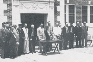 The opening dedication ceremony of Jackson Hall, as shown in the 1940 Alcalde.
