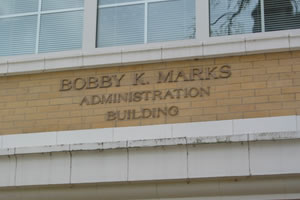 The Marks Administration Building is a three-story building located in the central part of campus along the historic quadrangle. It was the sixth permanent structure to appear on campus, originally constructed as the university's first science building.