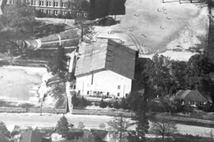 The Men's Gymnasium was located near the intersection of Twentieth Street and Avenue I. A large frame structure, the gym was built with money and labor from men students and with assistance from faculty and Huntsville citizens when funds for a permanent building were unavailable [79]. The gym was 80x100 feet and capable of seating 5,000 people on the main floor. Dressing and equipment rooms were located in the basement. While men's sports were the obvious draw, Mrs. Franklin D. Roosevelt visited the campus in 1937 and spoke to the campus and citizens of Huntsville in the building. The "cracker box" gym, as was the nickname noted in the 1956 Alcalde, was removed from campus in the 1950s; a second gymnasium built of brick was constructed on the site. The university's gymnasium for women was demolished in 1983 to make way for the Communication Building.